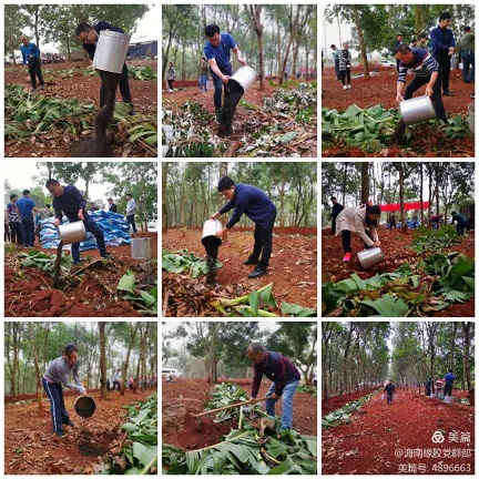為將結(jié)對共建落到實處,第一黨支部結(jié)合當前基地分公司正在開展膠園冬春管理工作的實際,與豐收隊黨支部共同商定開展“結(jié)對共建同進步 義務(wù)獻肥促冬管”主題黨日活動。在海墾集團黨委委員、副總經(jīng)理,海南橡膠黨委書記、董事長艾軼倫等黨員帶領(lǐng)下,支部黨員積極響應號召,自發(fā)捐款3400元購買羊糞生物有機肥,并施放到豐收隊的橡膠林段,為明年橡膠增產(chǎn)增收貢獻綿薄之力。