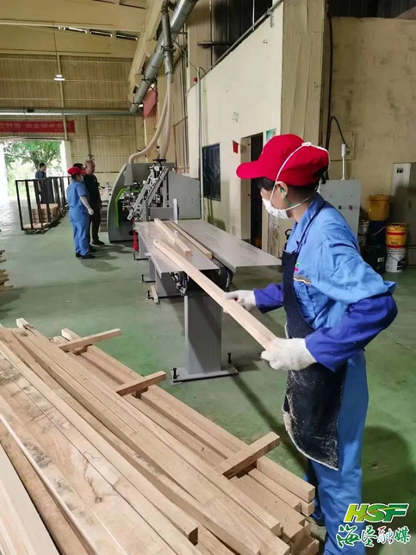 “現在加工廠主要對宜家FSC‘零添加’橡膠木刨光材和定制料產品進行生產加工?!焙▽毾鹆之a集團生產技術研發部部長郭雄彬介紹,加工廠自9月8日局部復工以來,通過強化閉環管理、防疫消殺、監測登記、物資保障等舉措,加快推進訂單保質保量完成。