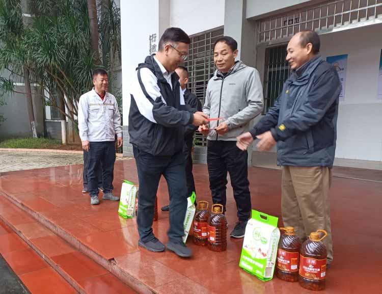 1月26日下午, 海南橡膠黨委委員、副總經理,金橡公司黨委書記、董事長楊宇,深入金星橡膠加工分公司慰問3名困難黨員。