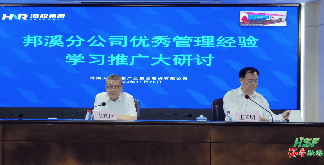 11月28日,海南橡膠以邦溪分公司優秀管理經驗學習推廣為主題,在海口舉辦2023年第三期“海膠大講堂”。旨在通過培訓,推廣邦溪分公司管理經驗,進一步落實省委書記馮飛提出的“穩種植、穩產量、穩份額、穩膠農、深加工、高端化、國際化”的發展思路。