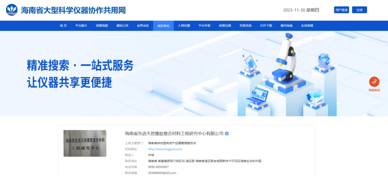 近日,海南橡膠下屬全資子公司海南省先進天然橡膠復合材料工程研究中心有限公司(簡稱“工程中心”)經專家評審、省廳審定等程序,獲批為大型科學儀器協作共用平臺(簡稱“大儀平臺”)新增成員單位 。