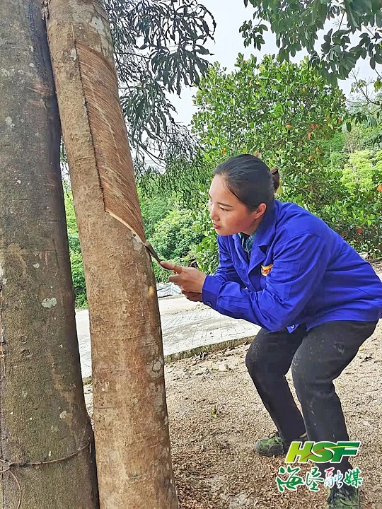海南橡膠龍江分公司膠工周小妹一把膠刀映初心夜里12時,海南橡膠龍江分公司金波派駐組二十隊膠工周小妹戴著膠燈、身著長衣長褲,帶著她的裝備騎上摩托車出了隊里,前往距離她10公里外的膠林割膠。周小妹在樹樁上練習...