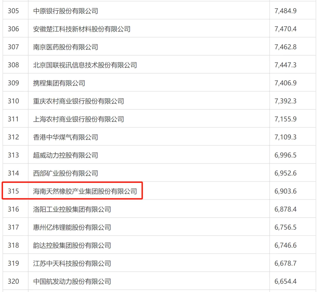 7月22日,財富中文網(wǎng)正式發(fā)布2025年《財富》中國500強(qiáng)排行榜。海南橡膠憑借2024年度6903.6百萬美元的營業(yè)收入成功上榜,位列第315位。